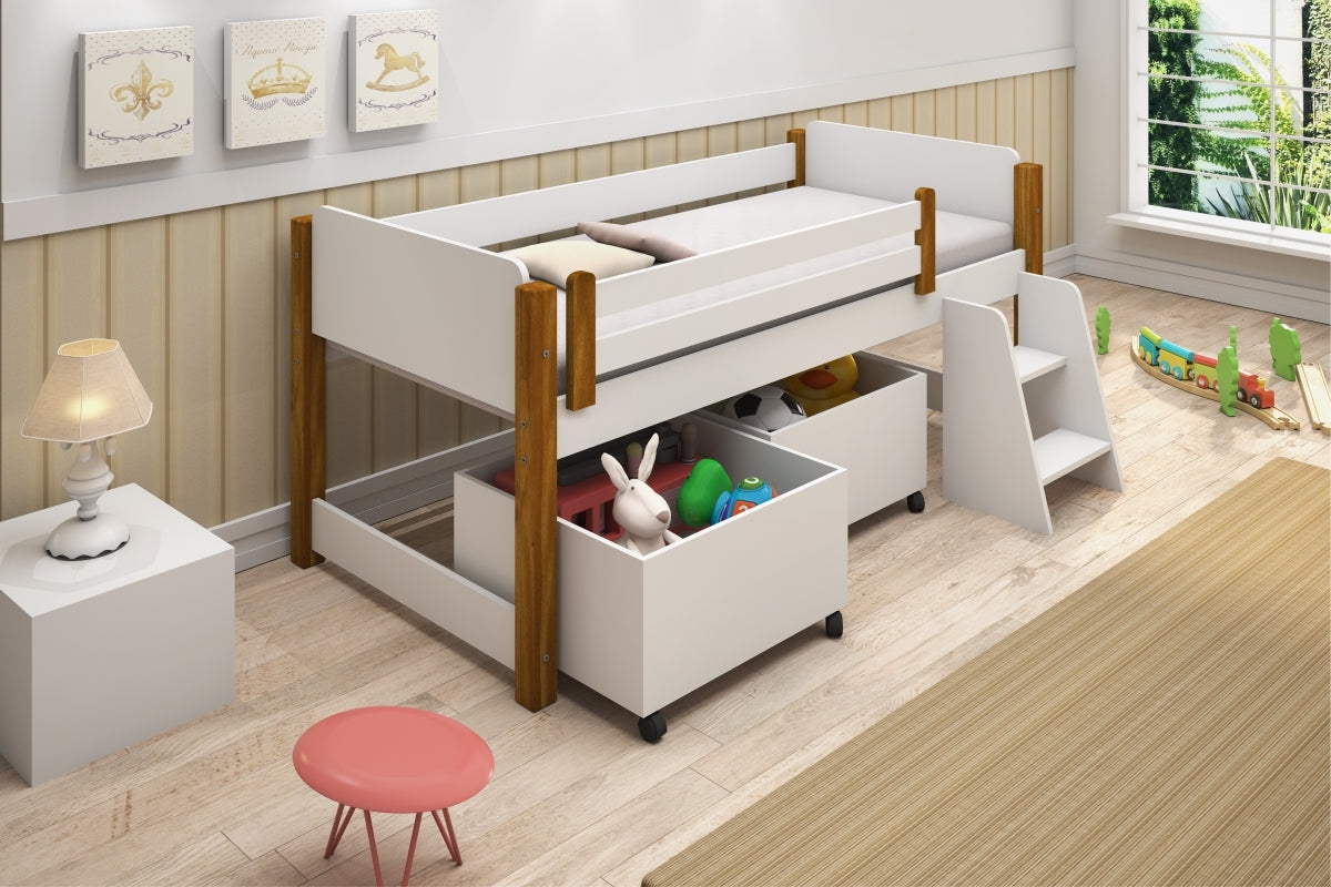 CAMA INFANTIL CON ESCALERA Y ESPACIOS DE ALMACENAMIENTO, DISEÑADA PARA COMBINAR DIVERSION Y FUNCIONALIDAD. INCLUYE COMPARTIMENTOS IDEALES PARA ORGANIZAR JUGUETES, LIBROS Y ACCESORIOS. SU ESTRUCTURA SEGURA Y RESISTENTE BRINDA CONFORT Y PRACTICIDAD, OPTIMIZANDO EL ESPACIO EN LA HABITACION. DISPONIBLE EN DIVERSOS COLORES.